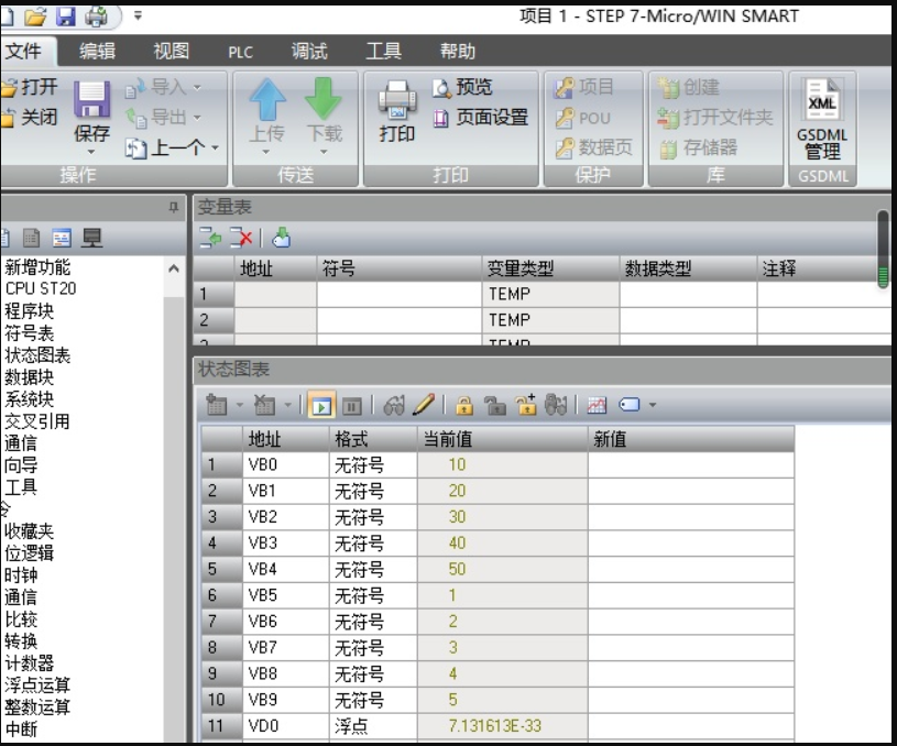 效果展示 读取VB0-VB9内存的数据,写VB5-VB9的内存数据